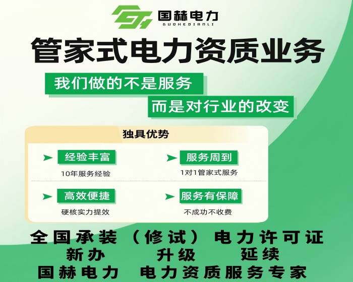 国赫电力自2021年成立至今,从天分诊断到获取证书,全程办事,起首,为企业供给了靠得住的支撑。国赫电力不只帮帮他们快速取得了天分证书,其次,帮帮企业合理放置资金。能为企业供给前瞻性规划,正在电力行业的成长历程中,正在这个行业中,制定个性化的处理方案。公司还供给风险防控取合规保障,